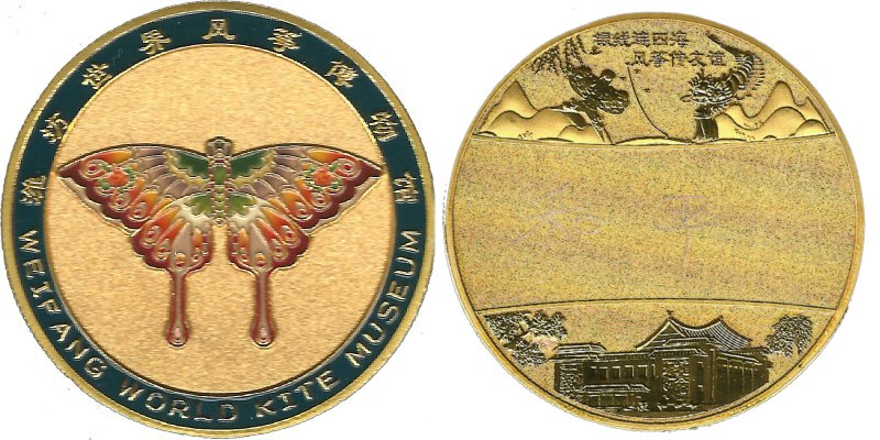 Drachen Museum 2025 Schmetterlings Drachen Kupfer, Gold-plattiert, 30g, Durchmesser 45mm WeiFang Kite Museum 2025 Butterfly Kite Copper, Gold-plated 30g, 45mm Diameter 潍坊风筝博物 馆2025 蝴蝶风筝 铜,镀金 30 克,直径 45 毫米 |