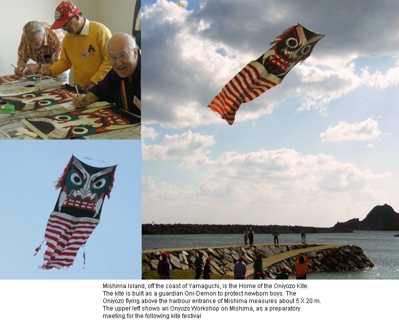 prolonged tongue as stabilizing feature. This type of kite is originated in Yokosuka district, Shizuoka prefecture which is famous for having a variety of kites. The eyes of these kites often have a wind driven rotating mechanism |