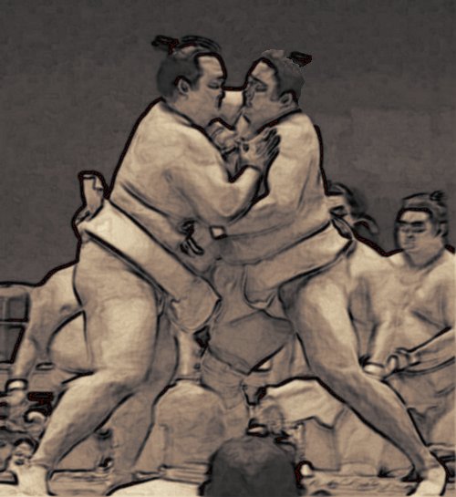 The expression 'aragoto' literally 'absurd style' is an abbreviation of 'aramushagoto', literally 'the reckless warrior matter'. This describes a bombastic Kabuki style exagerrating all aspects of the rôle (acting, wig, make-up or "kumadori", costumes, dialogues, oversized swords, etc.) to portray valiant warriors, fierce gods or demons. The more general kabuki genre style is 'tachiyaku' ('leading male rôle', '立役'). Exaggerated 'tachyaku' 'absurd style' maybe 'aragoto' or in contrast 'wagoto' (和事), literally 'soft style' in exaggerated form. | ||||