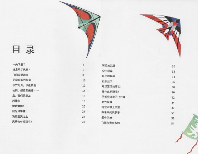 风筝的历史、风筝的物理特性;风筝的种类;天空中的艺术;没有精确的蓝图