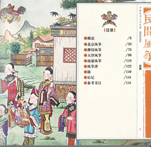大量彩色照片展示民间风筝,并附有 描述和说明,按产地分类。