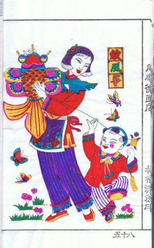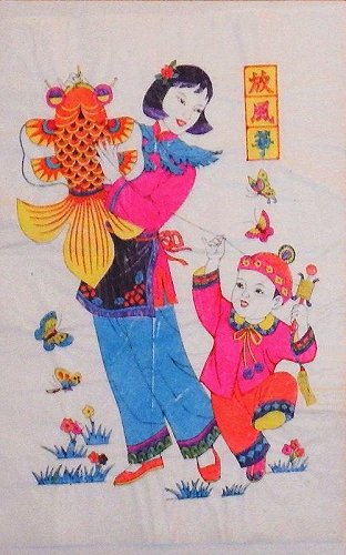 NianShuXuan TePin" 2003 ca. 25.3 X 16.9 cm Text: "Fang FengZheng" ('Drachensteigen') auf Drachen: "MinGuo-AnChun" ('Friede dem Volk') |