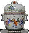 ZhiYiZi Elf Jungen im Obstgarten (vier Handgriffe als Fabelwesen ausgebildet, der Deckel-Griff ist als Porzellan-Spinne ausgeformt) ZhiYiZi Eleven Boys playing in the Orchard (four handles with mythological creatures, the lid is a porcelain spider) 22.0 X 15cm (mit Deckel / incl. lid) XiAn 2011 |