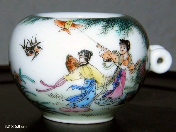 FengFei Drachensteigen doppelwandiges Gefaess Kite Flying double walled beaker 7.2 x 6.9 cm JingDeZhen (2012) Signatur / Porclain Mark |