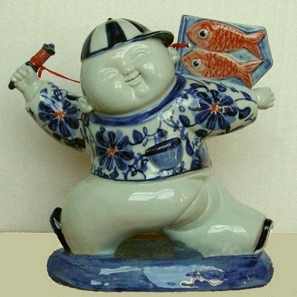 FengZheng XiYangYang de TongZi Froehlich Drachensteigender Knabe (Porzellan-Figur) Kite Flying Boy Radiant with Joy (porcelain figurine) 24.5 X 26.0cm (Sammlerstueck / Collectors Item) JingDeZhen 2012 |