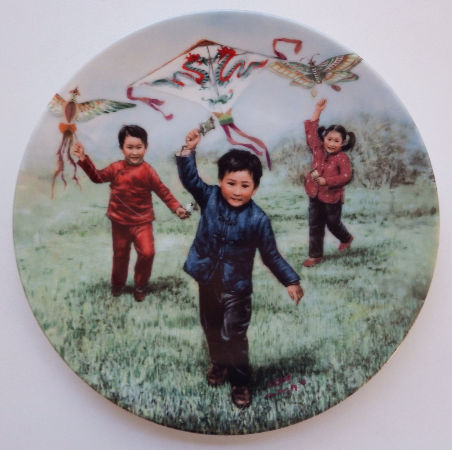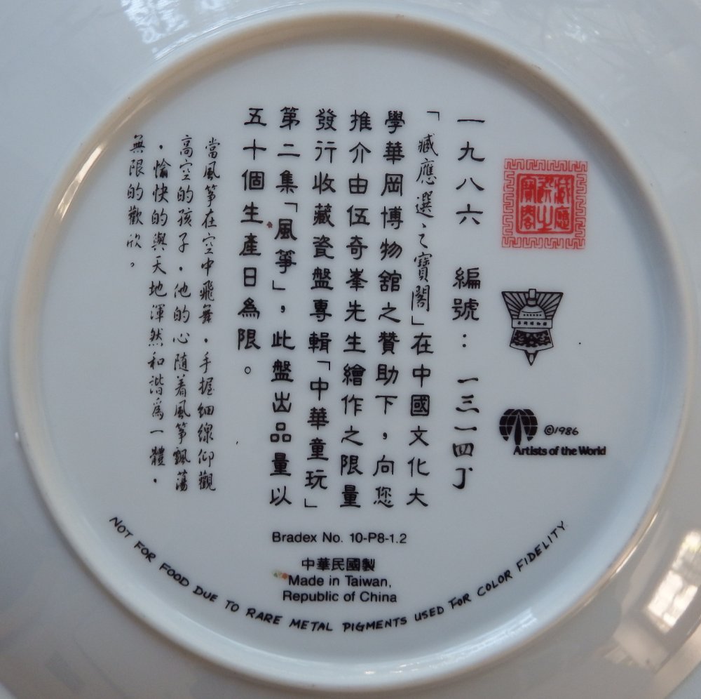 Feng Zheng Drachenfliegen Kite Flying von / by Kee Fung Ng (Taiwan) Sammelteller / Collectors's Plate 21.6 cm (Rueckseite / Backside) Taiwan 1986 |