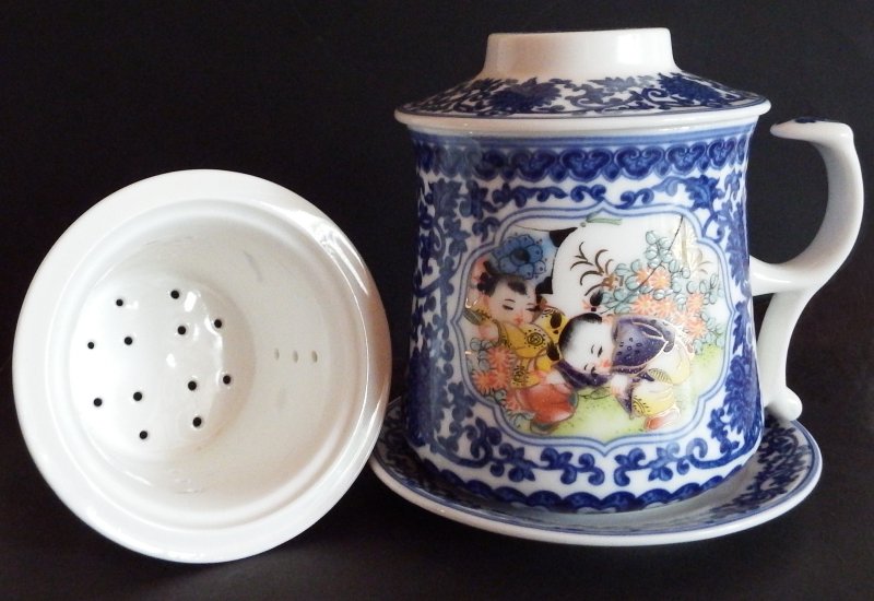 mit Sieb-Einsatz und Unterteller Porzellan Tee-Mug with sieve and saucer porcelain 9.0 x 12.0 cm Duchrmesser x Hoehe / diameter x height (diameter mug, base / height with saucer, sieve and lid) |