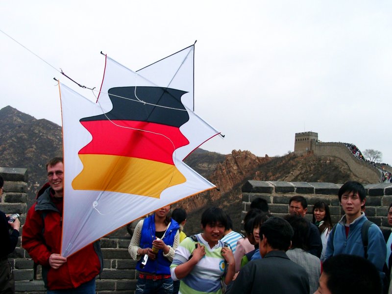 der Chinesischen Mauer unsere Drachen steigen lassen.