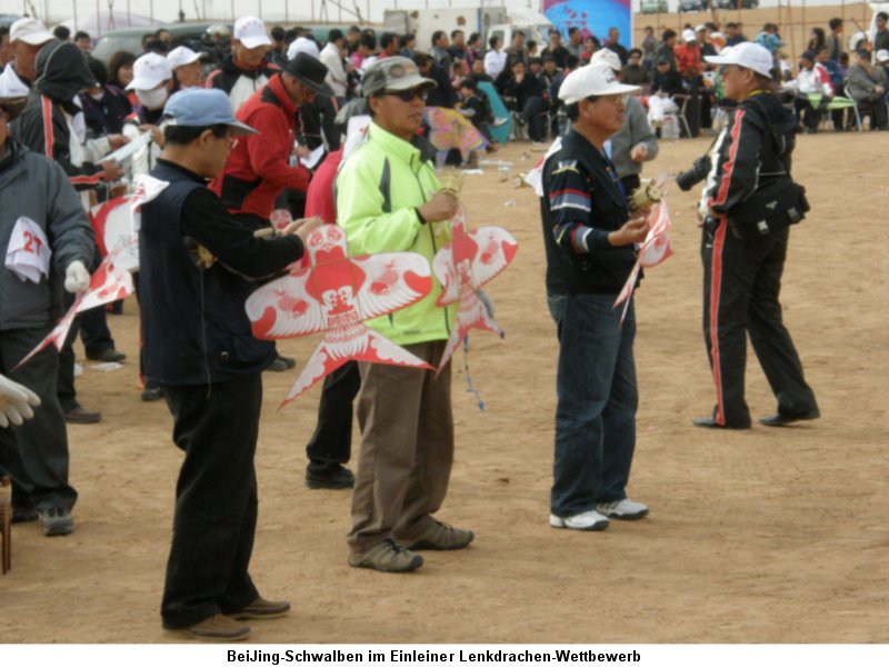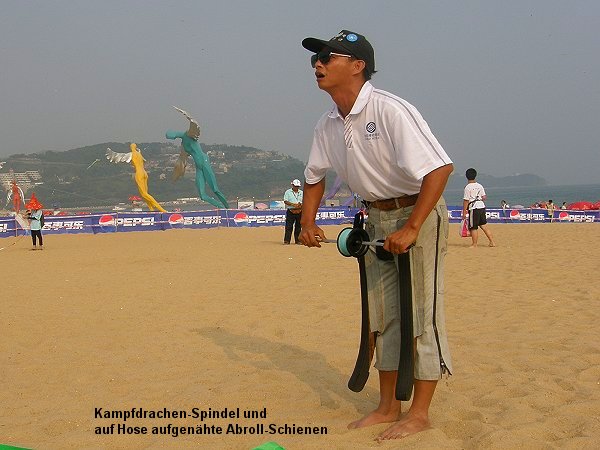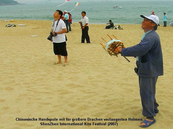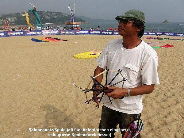 Wickelgeschwindigkeiten sind abenteuerlich. Auf dem diesjaehrigen Internationalen Drachenfest in WeiFang und dem Internationalen Drachenfest in YinChuan waren die Teilnehmer der einschlaegigen Wettbewerbe aus HongKong die erfolgreichsten. Ein Kommentar eines sichtlich geschockten und fassungslosen sino-amerikanischen Teilnehmers zu den erfolgreich abgesaegten Drachen am Drachenhimmel: "... they slaughtered everyone, they really slaughtered everyone...". |