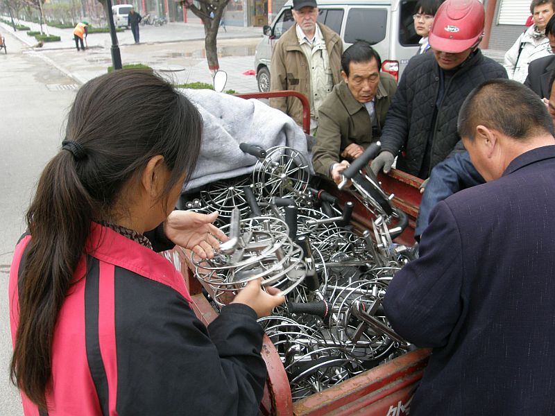 Die Chinesischen Handspulen werden aufgrund der mit ihnen erzielbaren hohen Aufwickel-Geschwindigkeiten auch gerne bei Wettbewerben eingesetzt. Abgebildet ist ein Wettbewerb, der im Jahr 2011 auch von mehreren Europaeischen Teams in YinChuan (Provinz NingXia) besucht wurde. |