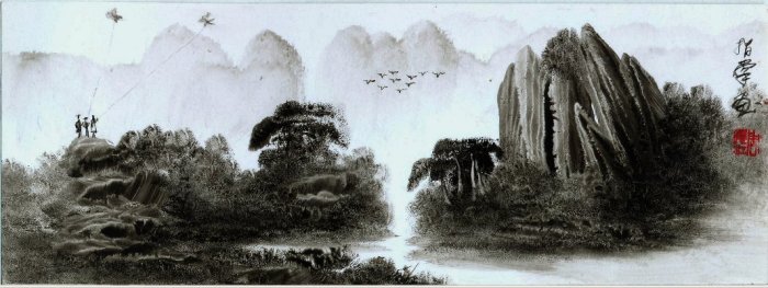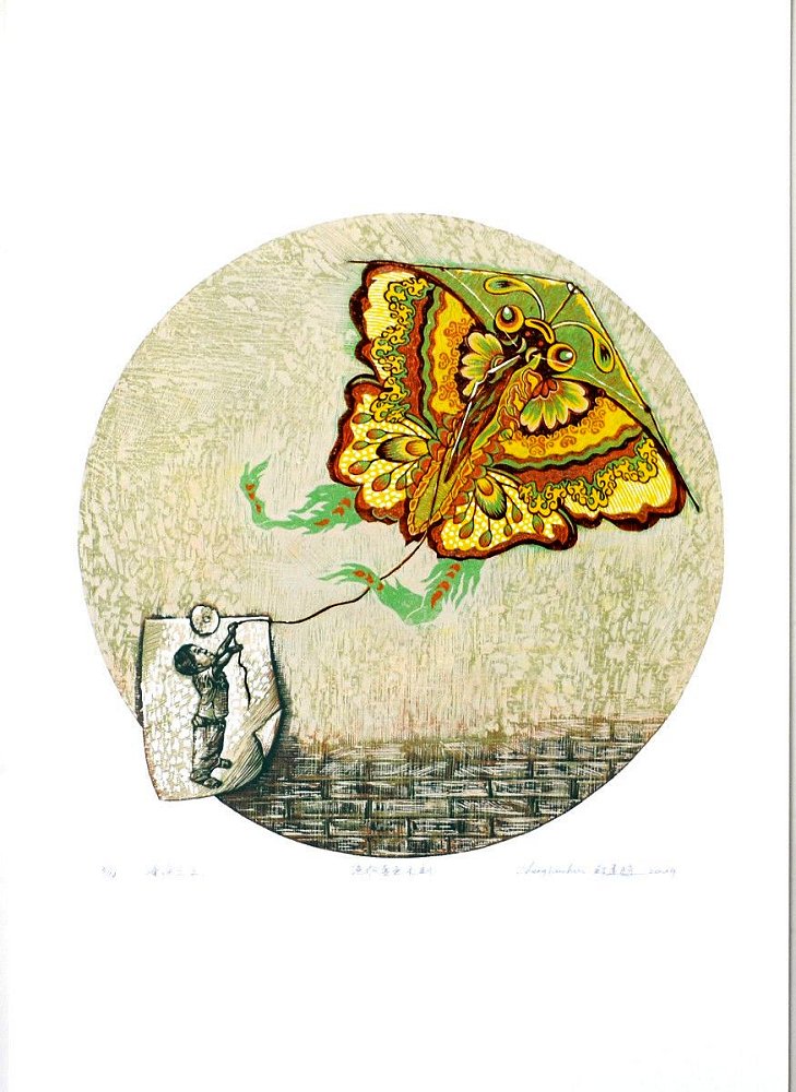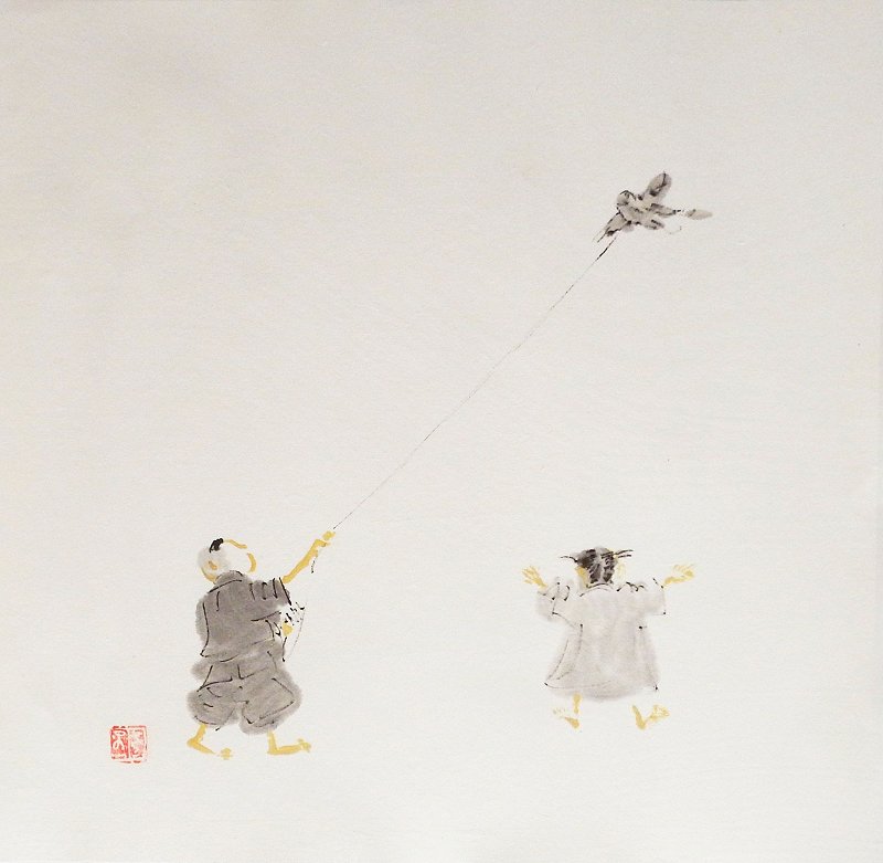 Drachensteigen Kite Flying von / by LI YanSheng (WuHan) (Papier-Tusche / paper-ink) 68 X 68cm 2013 (BeiJing) Biografie/ Biography (Chinese) |