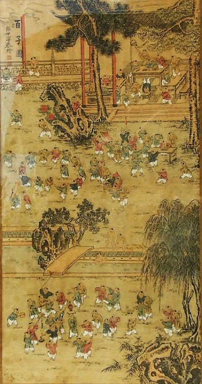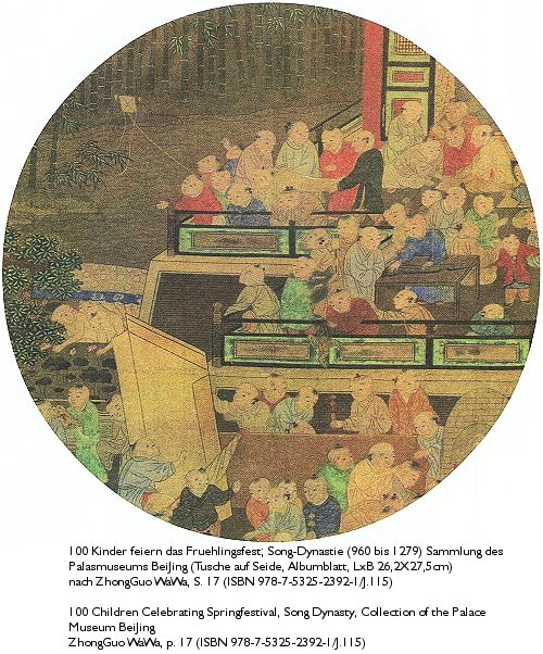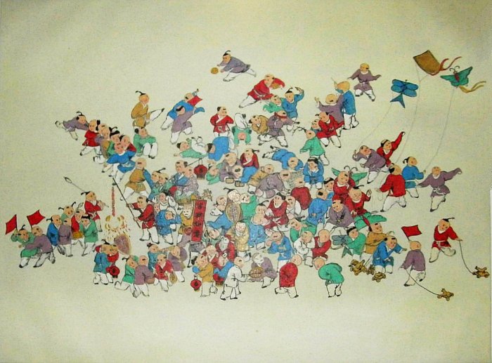 Bai Zi (100 Kinder) (Oelbild / oil painting) 120 X 90cm 2009 Hui Dan (ShenZhen) (nach einer klassischen Vorlage aus dem Buch 'Treasured Album of China') (from a classical template from the book 'Treasured Album of China') |