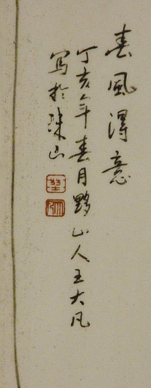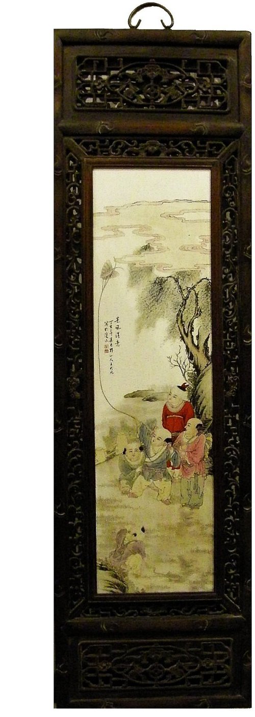 Selbstgefälliger Frühlingswind (ChunFeng DeYi) Keramik-Kachel mit Holz-Fassung Complacent Wind of Spring porcelain tile with wooden mounting Signatur / Porcelain Mark 73.5 x 20.7cm (Kachel /tile) 119.5 x 36.5cm (Holzfassung /mounting) |