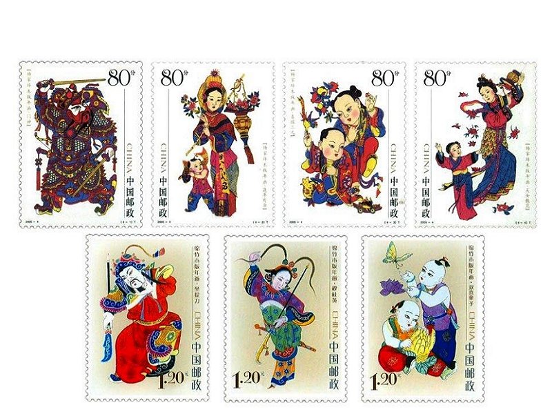 Frieden (Neujahrsbild, Holzdruck / woodblock print) 34.5 X 45.5cm 2000 YANG LuoShu (YangJiaBu, WeiFang, ShanDong) Variationen / Variations Variation auf Briefmarke Variation on a postal stamp |