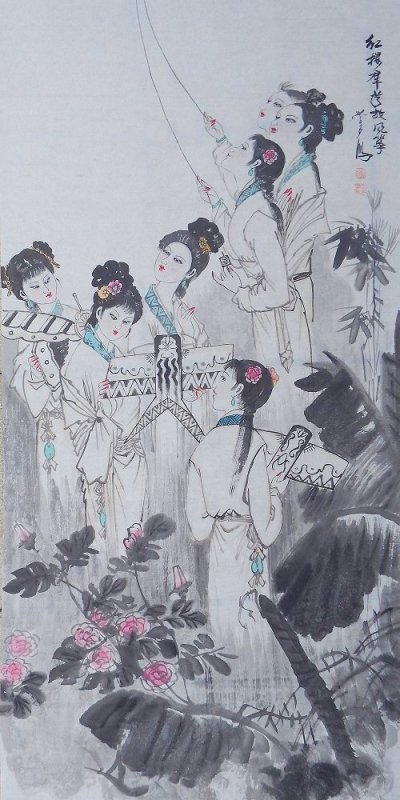 HongLouMeng RenWu - FangFengZheng Traum der Rotern Kammer, - Drachensteigen Dream of the Red Mansion, -Flying Kites von / by ZHANG YingChun (Papier-Tusche, paper-ink) 69 X 139cm 2005 (BaoJi, JinTaiQu, ShaanXi) |