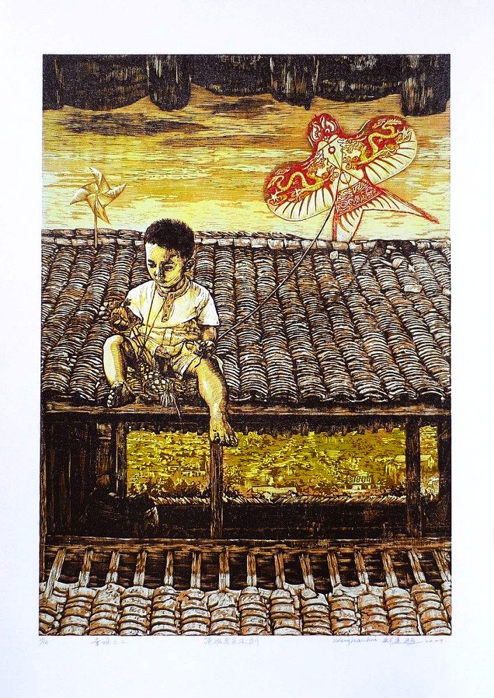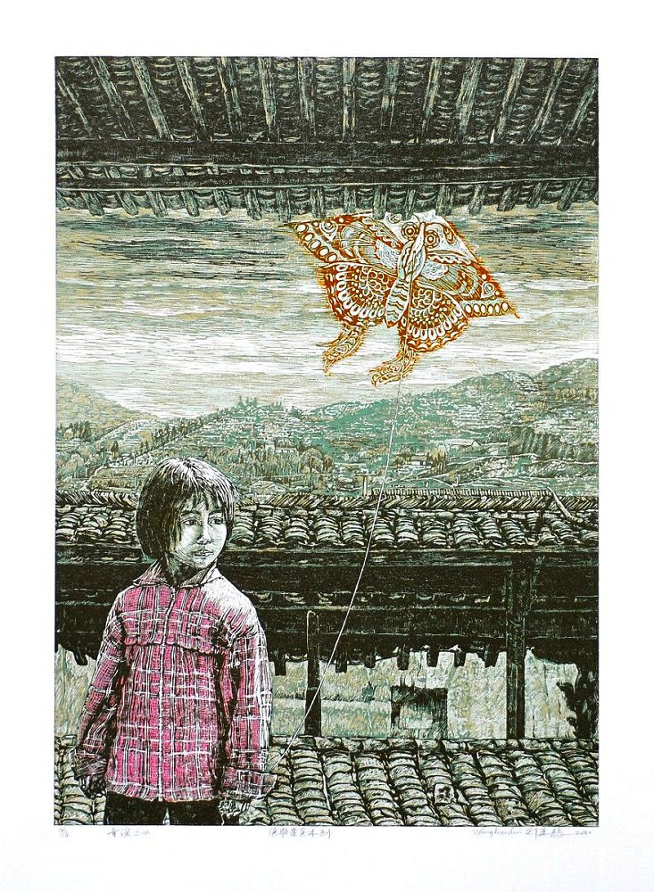 (2) Lied der Kindheit (2) Song of Childhood (2) von / by ZHENG JianHui (Holzdruck / woodcut) 55X 78cm 2009 (PuTian /FuJian Prov.) |