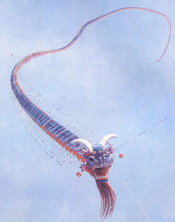 Nach Ruecksprache koennen wir fuer Sie auch die hier abgebildeten Drachen besorgen (Sonderanfertigung). Auch Auftragsarbeiten, z.B. zu Werbezwecken, koennen wir annehmen. Ausstellungs- und Promotion-Service moeglich. Neben Drachen fuehren wir ausserdem chinesisches Kunstgewerbe. Zu den Drachenangeboten Copyright 2002 ff: Hans P. Boehme and Feifei Xu |