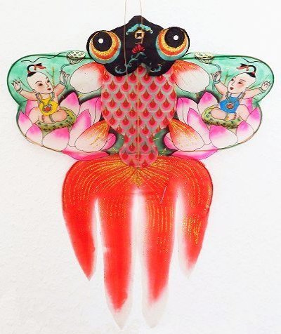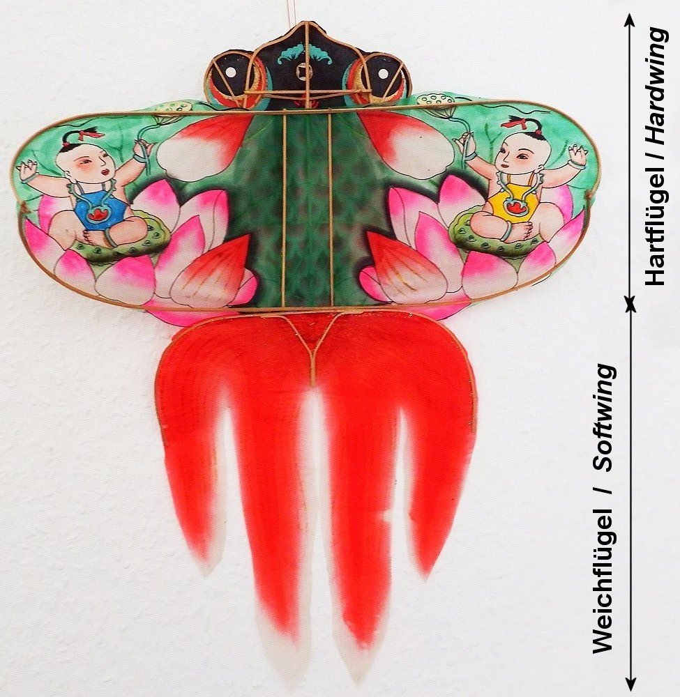 双 胞胎在莲 花和金 鱼 (链接会将您带到相应的图片语言) 36cm x 31cm (mit Schwanz / with tail / 带尾) Der obere Teil entspricht einem Hartfluegel-Drachen, der untere Teil entspricht der Definition eines Weichfluegel-Drachen. Die beiden Teile sind ineinander gesteckt, und koennen prinzipiell fuer sich alleine geflogen werden. Siehe hierzu die Rueckseite mit der Darstellung des Drachen-Geruestes) The upper part is by definition a Hardwing Kite. The lower part is by definition a Softwing Kite. Both part are interlocked to each other. In principle, they may be individually flown. Please have a look at the backside with the outline of the two rims. 根据定义,上部是硬 翅类风筝。 根 据定义,下部是“软翼风筝”。 这两部分彼此互锁。 原则上,它们可以单独飞行。 请看一下带有两个轮辋轮廓的背面。 |