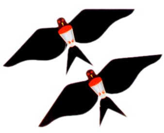 双燕 (ShuangYan) Schwalbenpaar (die Schwalben sind beide ueber ein Stoeckchen angebunden; die Drachenleine selbst <Waagenleine> ist direkt an dem Stoeckchen angebunden, analog einem Mobile; dadurch "flattern die Schwalben umeinander"; siehe Flugbild!) Couple of Swallows (both swallows are tied to a small stick; the bridle line is directly tied to that stick, analog to a mobilecculpture as a kinetic object; therefore the swallows wobble around; cf. inflight picture) 双燕子 (两只燕子都绑在一根 小棍子上; 直接绑在那根棍子上,类似于流动雕塑作为动力 物体; 因此,燕子四处摇摆。比较查看在放飞的图片) |
