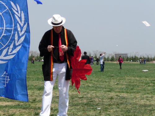 枫叶 (FēngYè) Ahorn-Blatt (zusammenlegbar , siehe Rueckseite!) Der Drachen ist von Three Stone Kites in BeiJing und wurde noch von Meister LIU Bing selbst gebaut. Der Drachen erhielt in seiner Kategorie den dritten Platz (WeiFang 2009) und wurde von mir als (temporaeres) Mitglied der Kanadischen Mannschaft geflogen (Fotos: vor dem Wettbewerb / beim Wettbewerb / waehrend der Preisverleihung) Maple Leaf (collapsible, see backside) The kite was made by master LIU Bing himself. unfortunately he deceased last decade. His grandchildren still manage Three Stones Kites in BeiJing. The kite won third place in its category during the 2009 WeiFang Festival, when I had been temporarily part of the Canadian team (pictures: prior to competition / during the competition / the price rewarding) 枫叶 (可折叠,请参见背面) 风筝是刘冰大师亲自制作的。 不幸的是,他去世了十年。 他的孙子仍在北京管理Three Stones Kites. 风筝在2009年潍坊音乐节上获得了该类别的第三名,当时我是加拿大队的一员(图片: 比赛前 / 比赛中 / 颁奖的时候) |