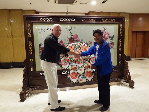 Uebergabe vom Erbauer des obigen Drachen; auf