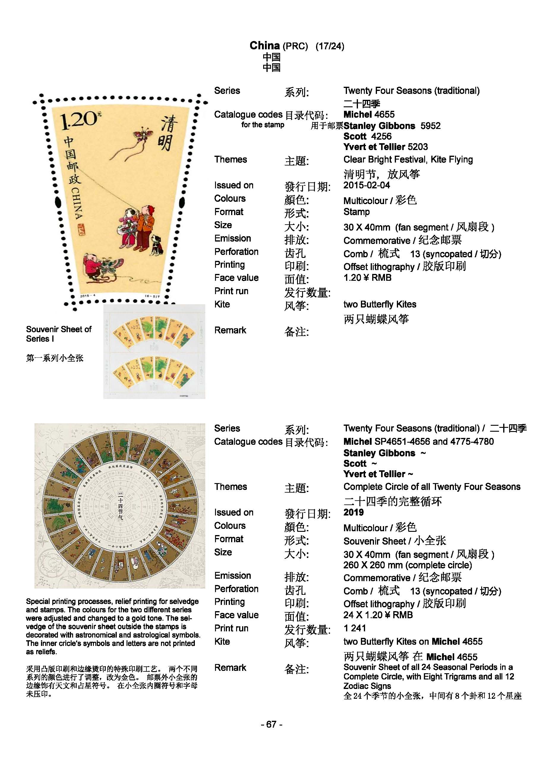 太阳历版本的邮票都装在一张颜色匹配的小全张中,其中有 24 枚轮子形状的邮票,请参阅此处)。